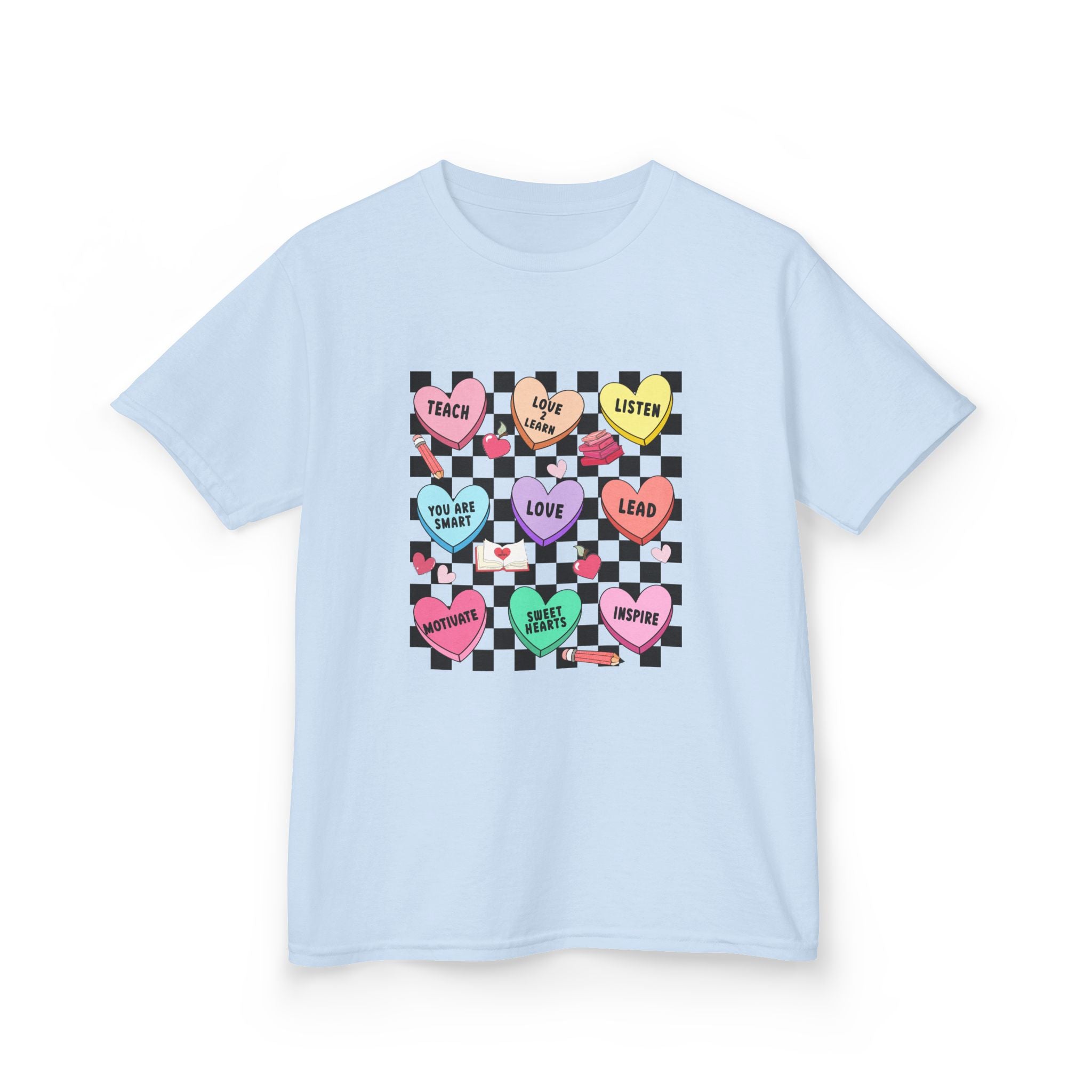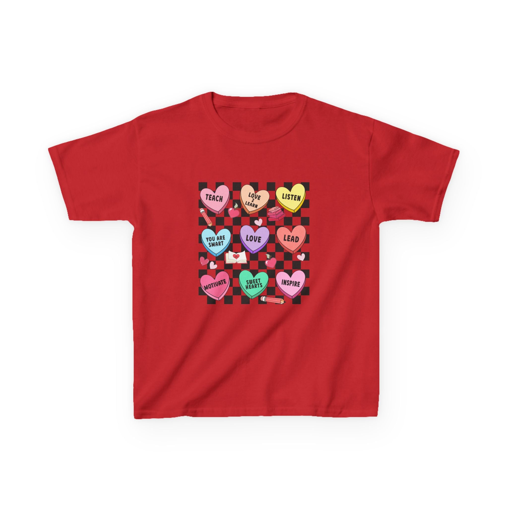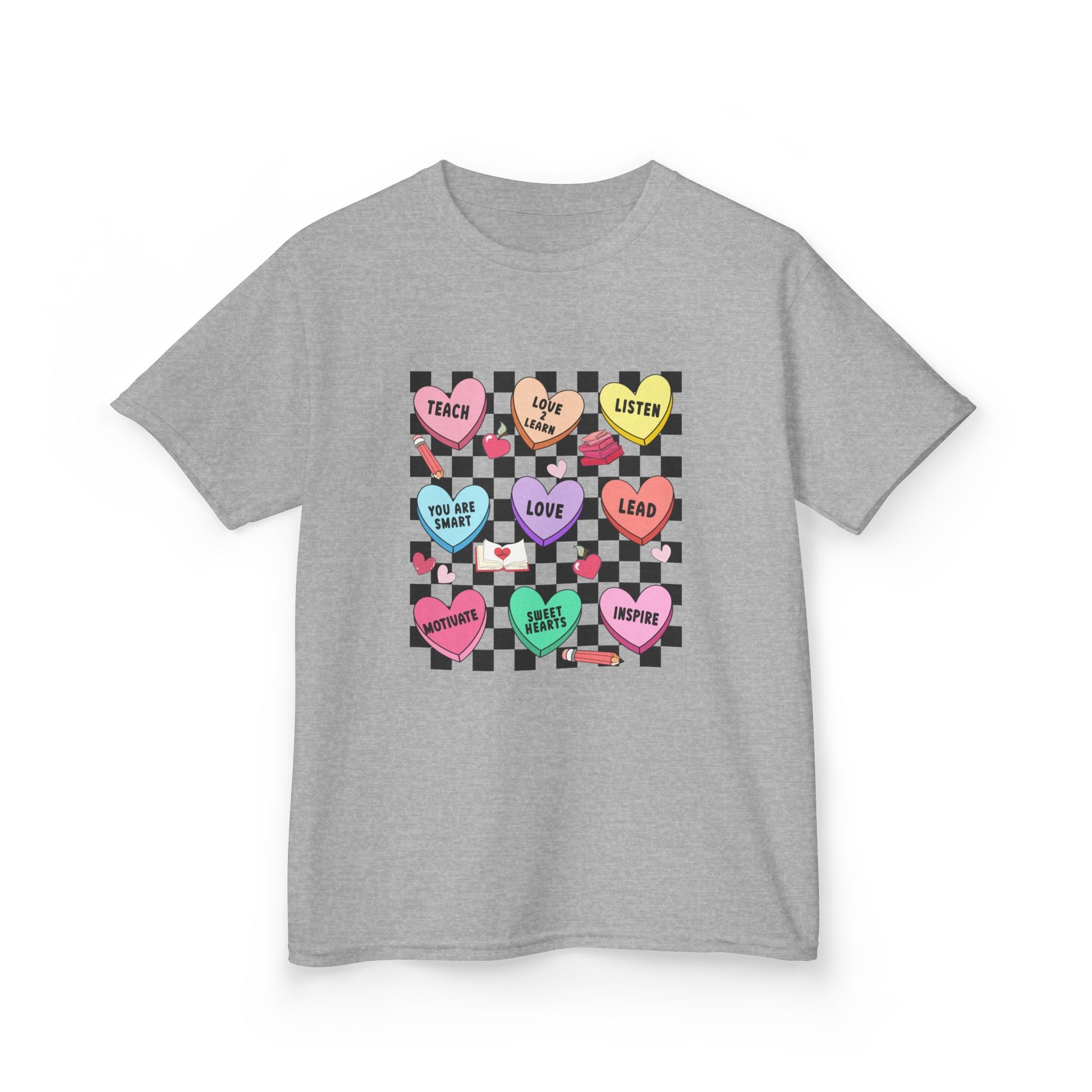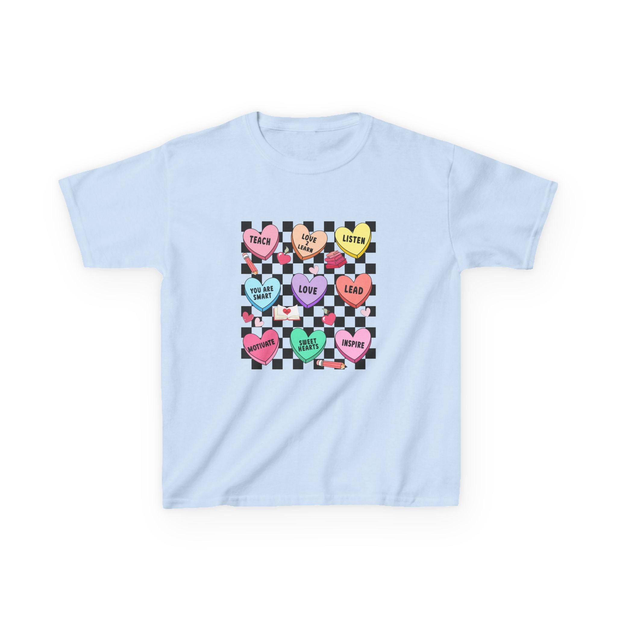 Candy Heart Checkerboard Kids T-Shirt | Pastel Hearts Words