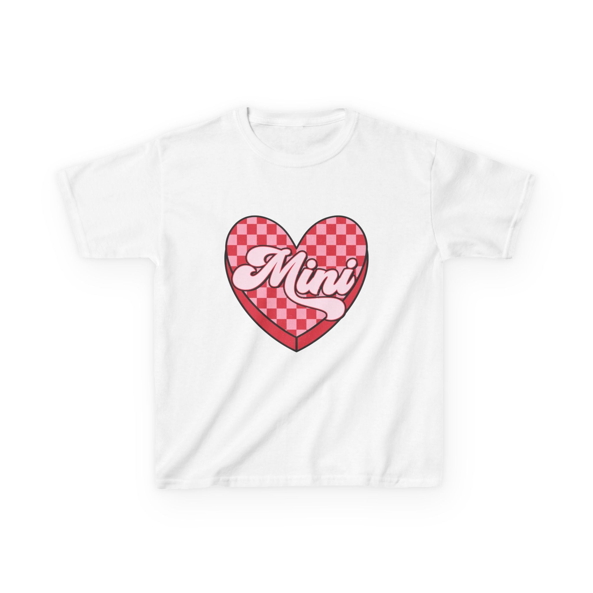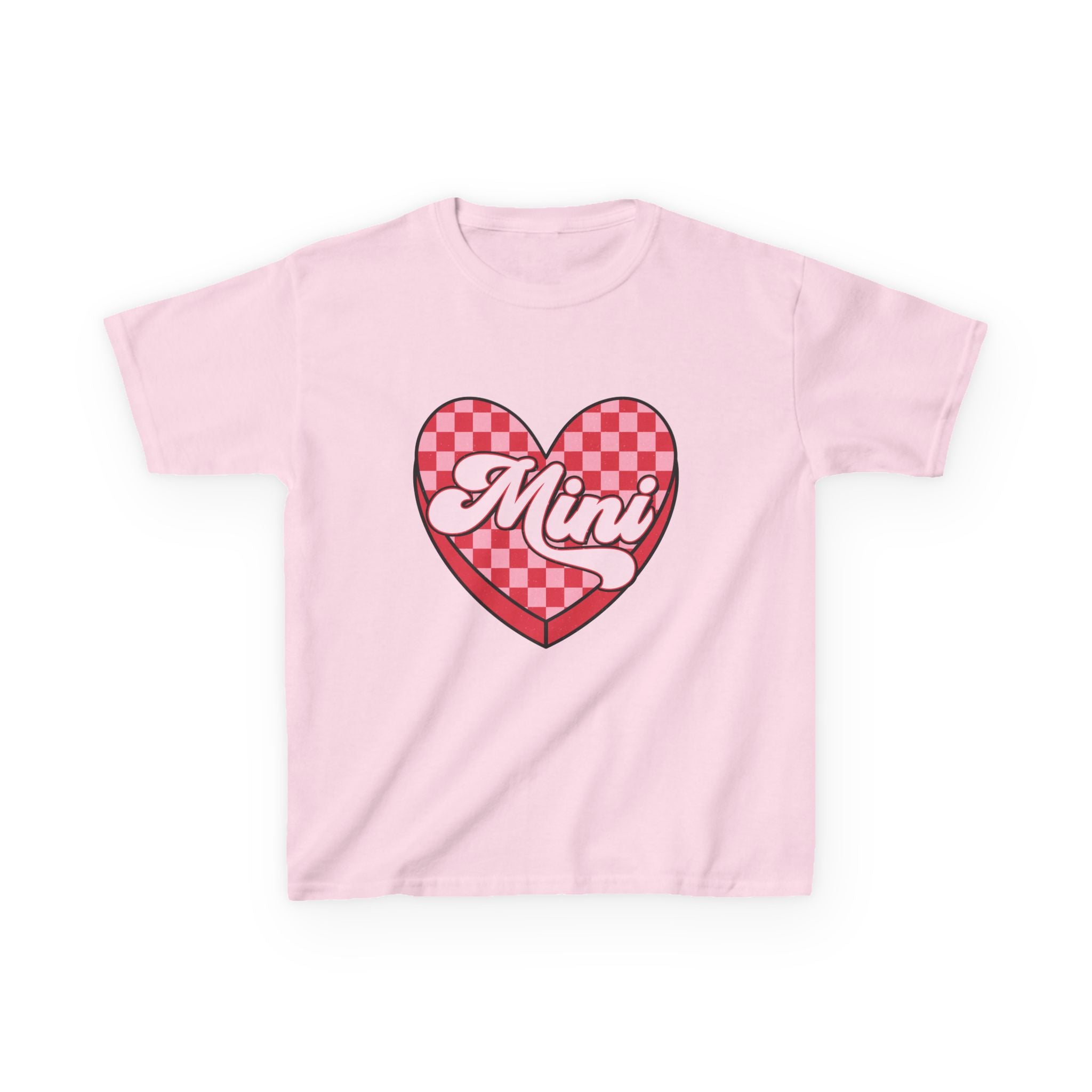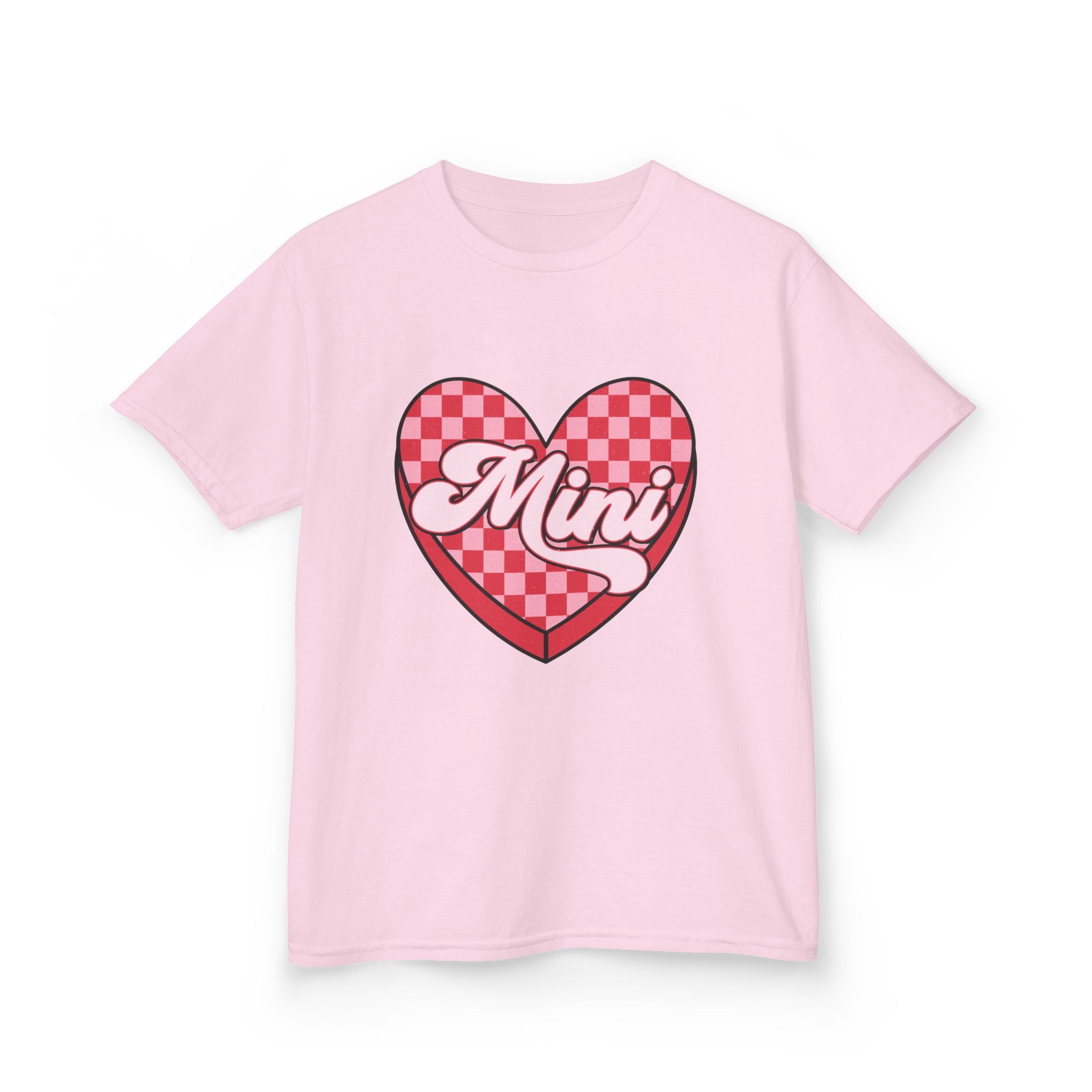 Mini Heart Checkerboard Kids Tee | Pink Retro Script