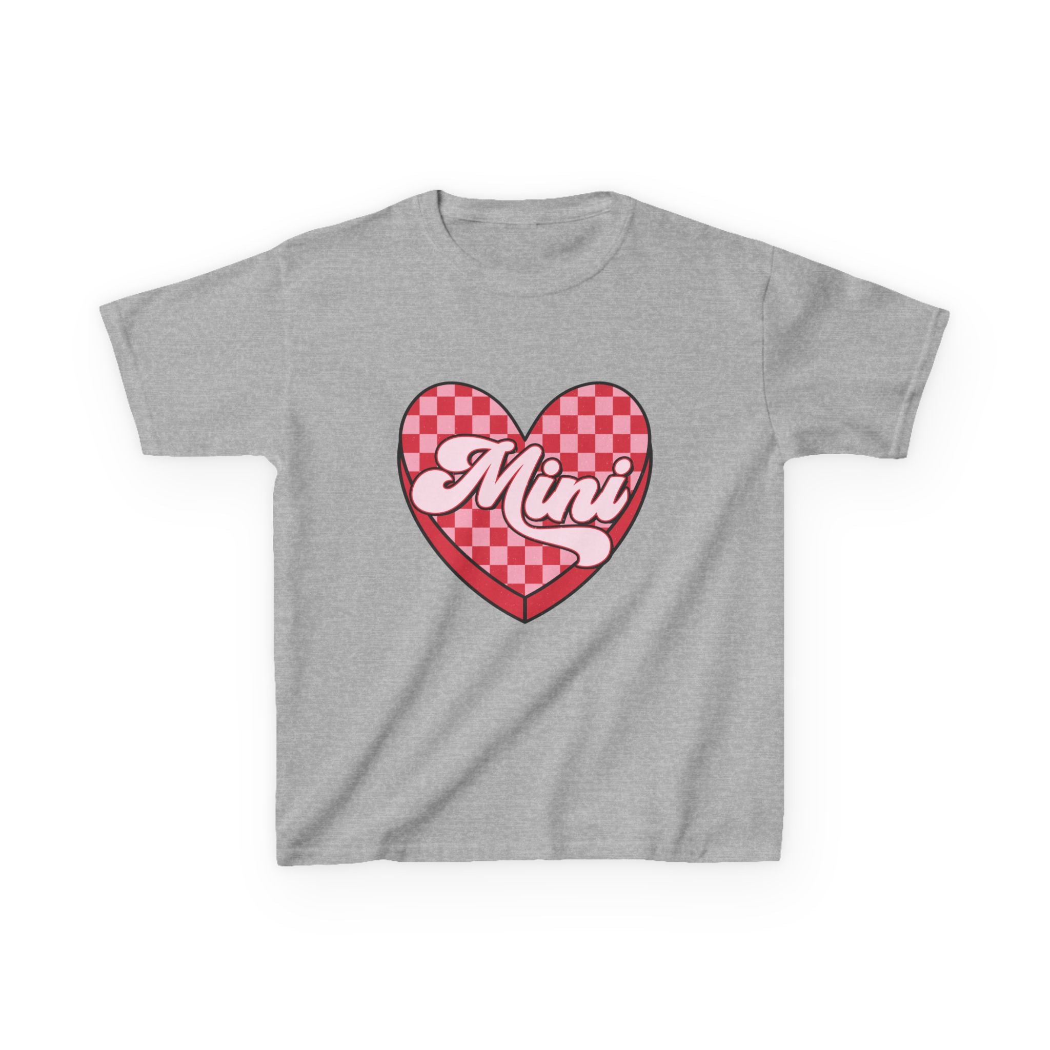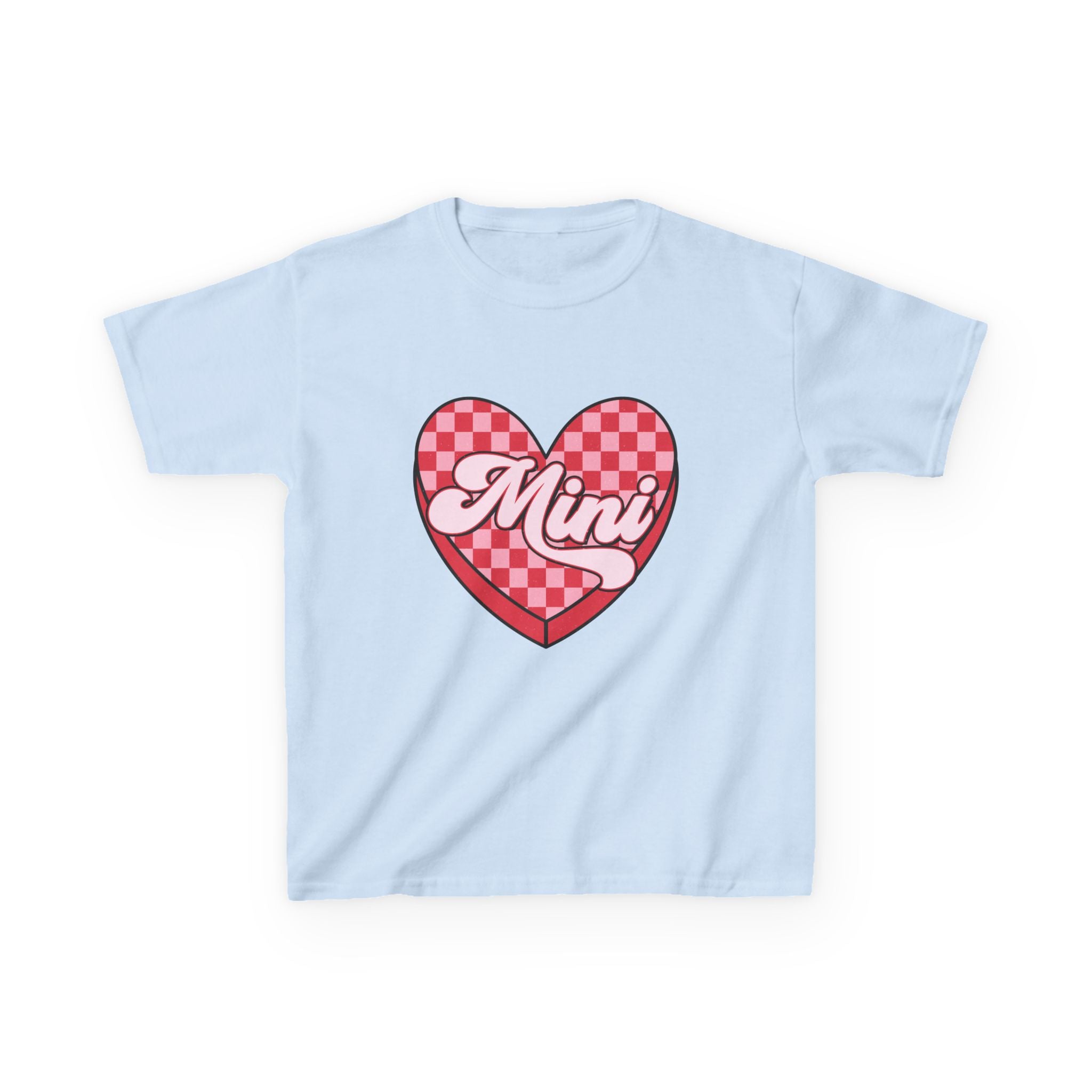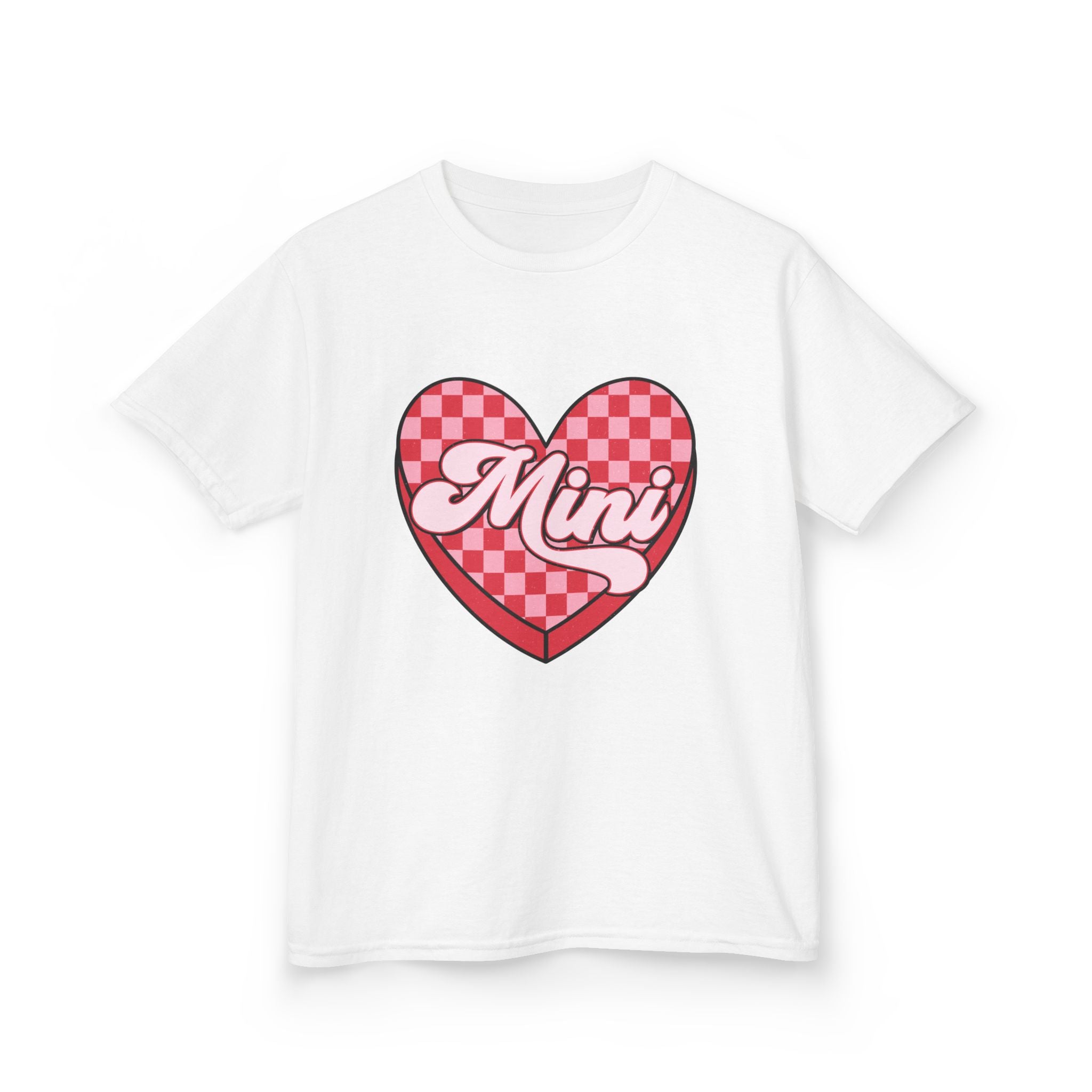 Mini Heart Checkerboard Kids Tee | Pink Retro Script