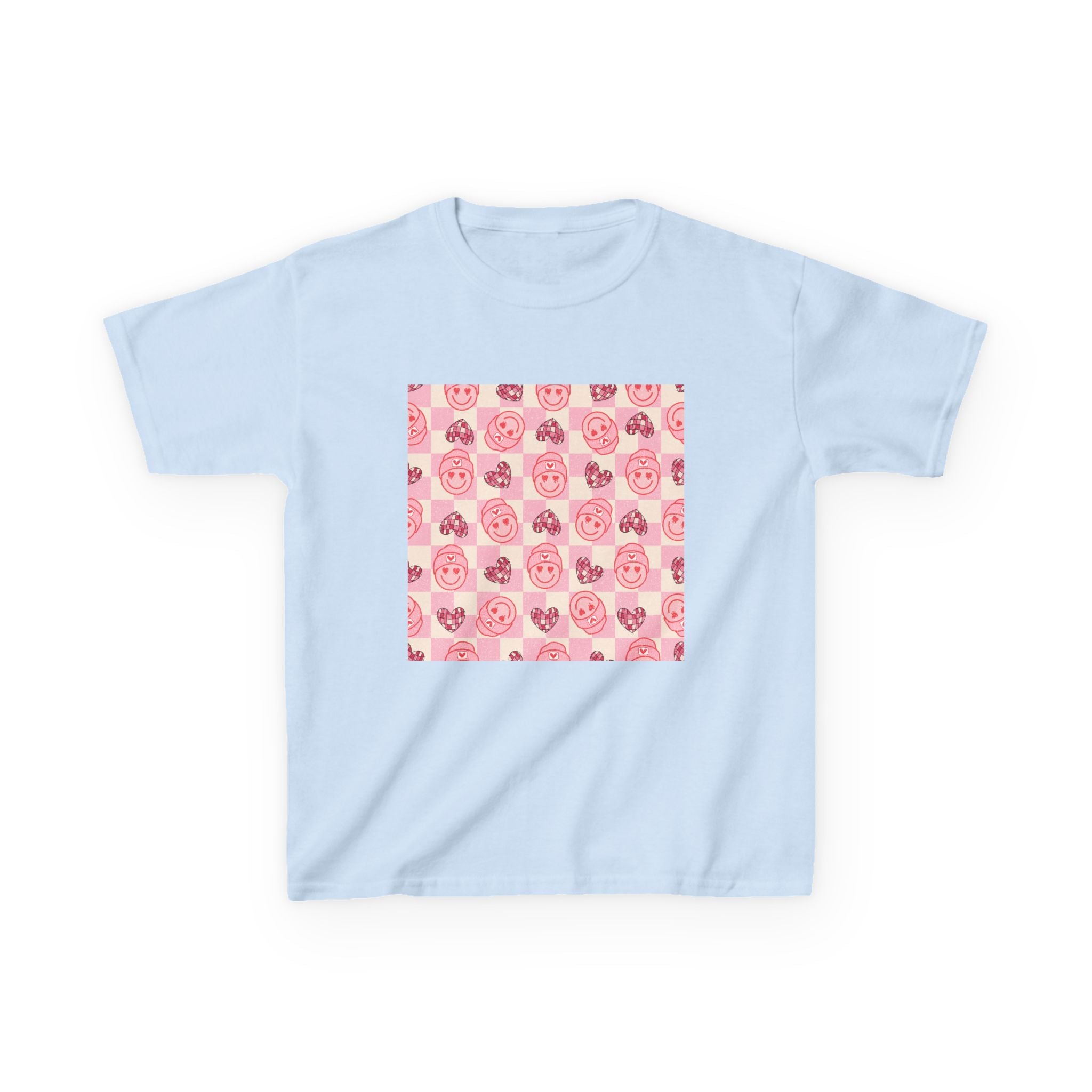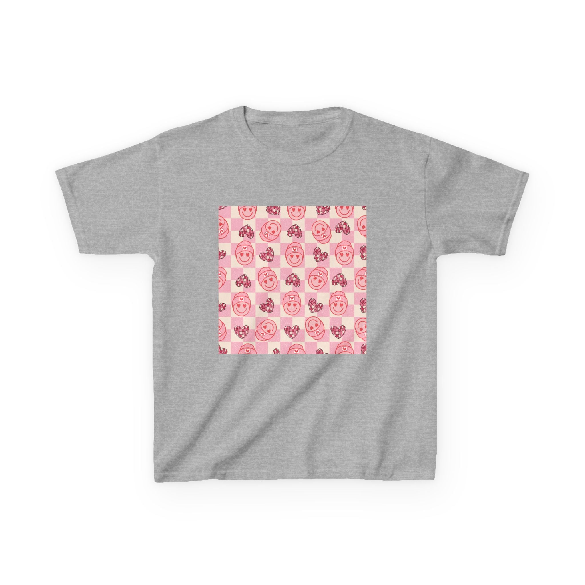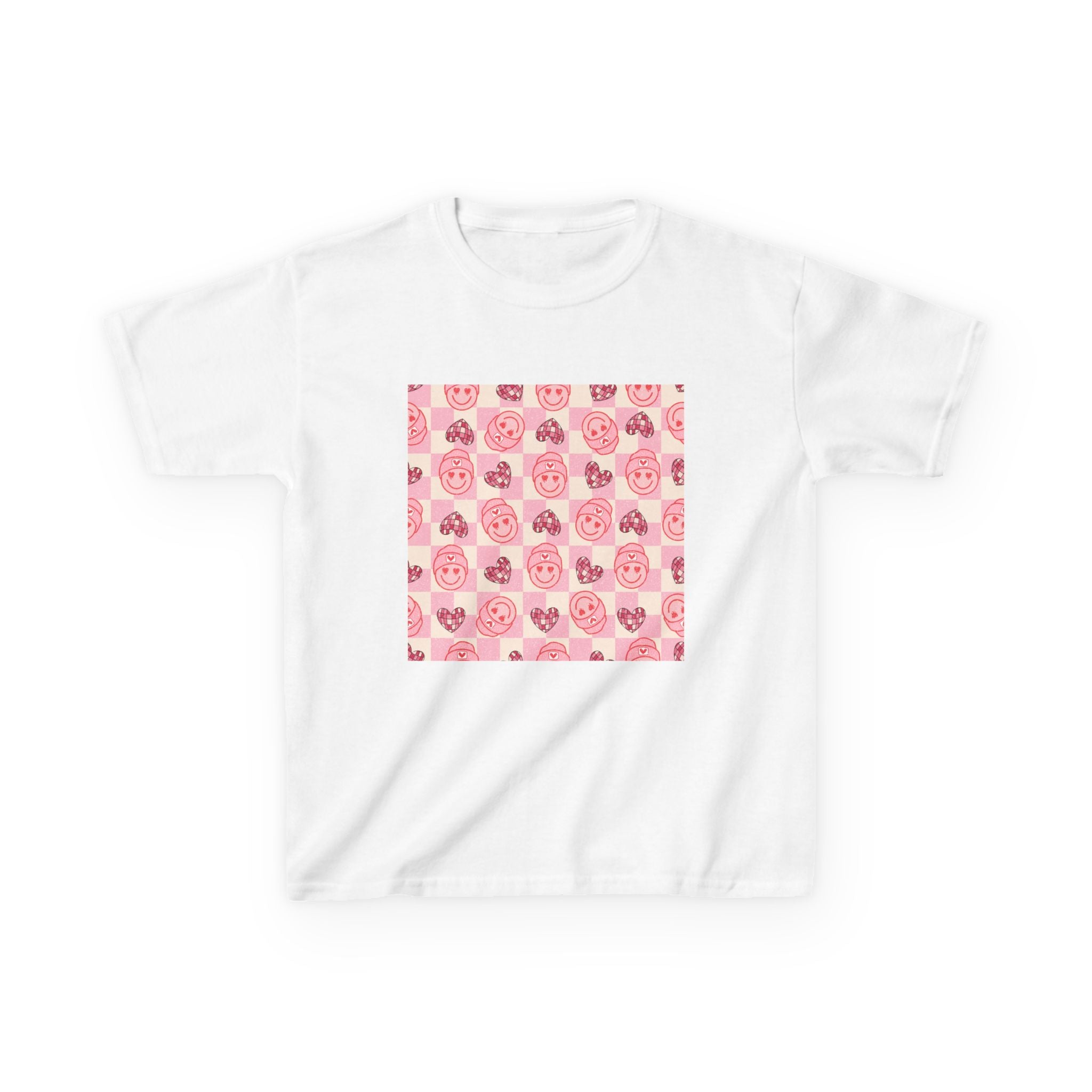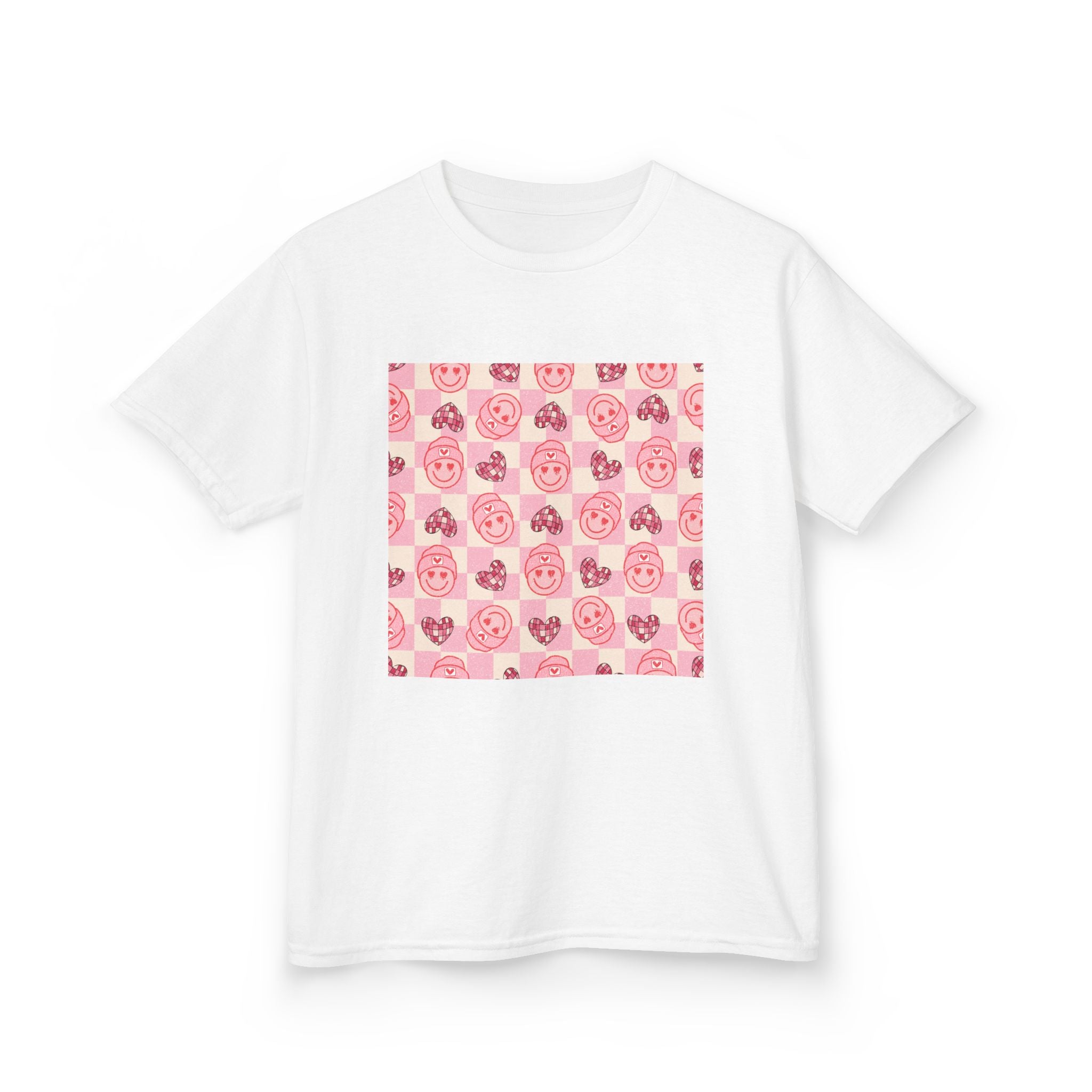 Soft, breathable tee printed with a cheerful, hand-drawn pattern of smiling roses in warm pinks. Lightweight midweight cotton sits comfortably on little shoulders and holds its shape through play. The square print sits on the chest like a tiny gallery — playful, bright, and quietly confident. Kids wear this when they want to bring color to a day at preschool, a neighborhood picnic, or slow afternoons of drawing and storytime. The fabric feels gentle against sensitive skin and the ribbed neckline keeps its shape wash after wash. Ethically sourced cotton and clean, REACH-certified materials mean parents can feel good about how it’s made.