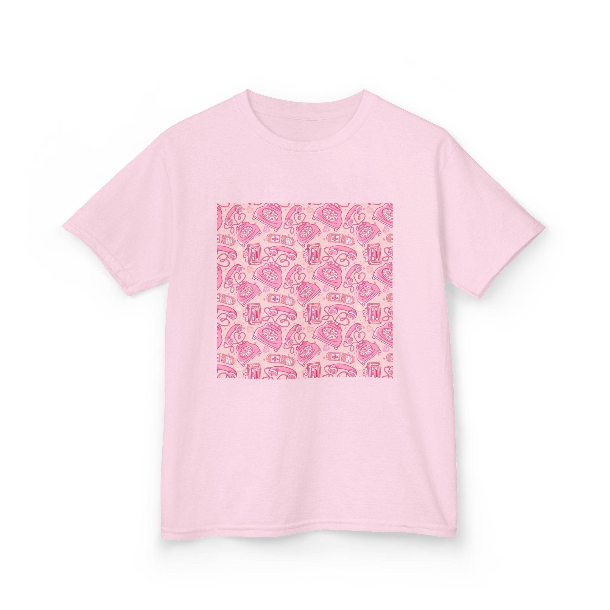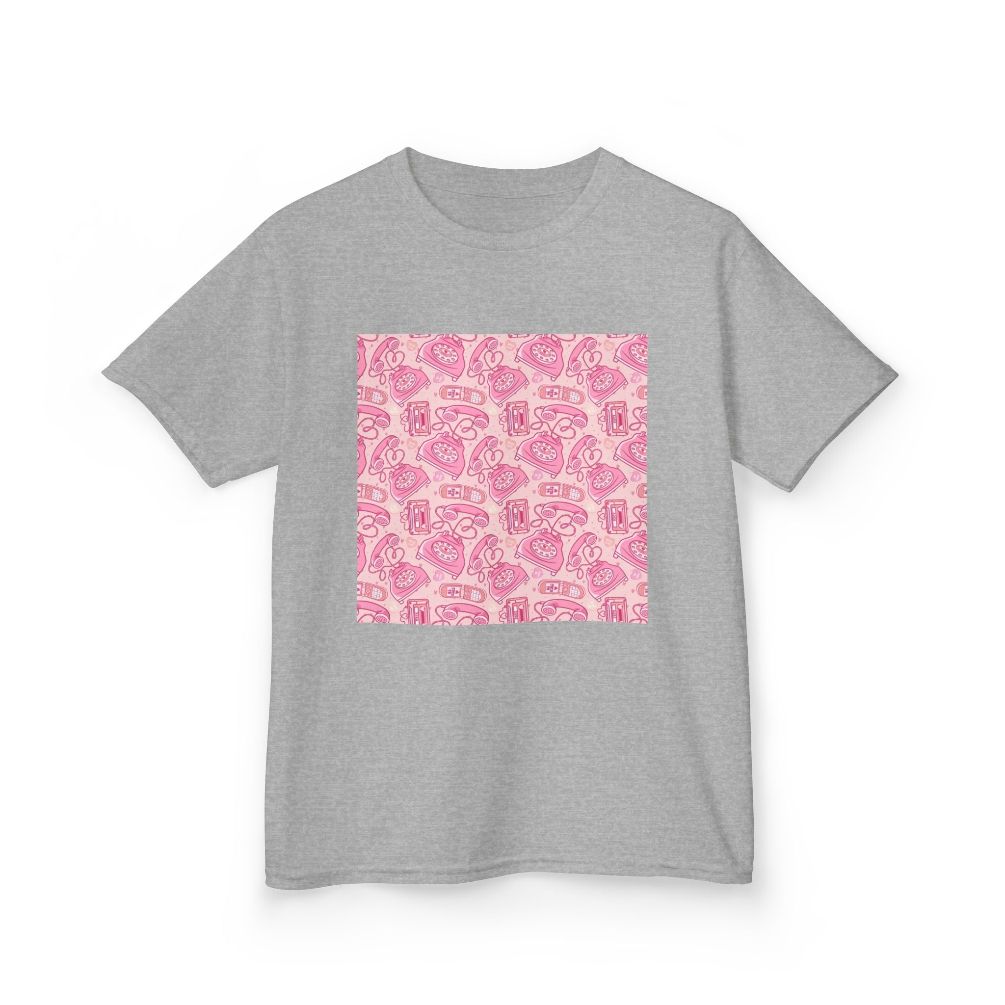 Soft, midweight cotton rendered in a playful pink pattern made for kids who love color and story. This short-sleeve tee sits comfortably at the crew neck and keeps its shape through shoulder tape and a ribbed collar. The square front print shows a detailed, hand-drawn motif in shades of rose and blush — bright enough to stand out, gentle enough for everyday wear. It pairs easily with jeans, skirts, or layered under a jacket for school days, park play, or cozy family outings. Breathable, durable, and wash-friendly, it carries thoughtful production touches like tear-away labels and REACH/Oeko-Tex certifications so caregivers can feel good about what their child wears.